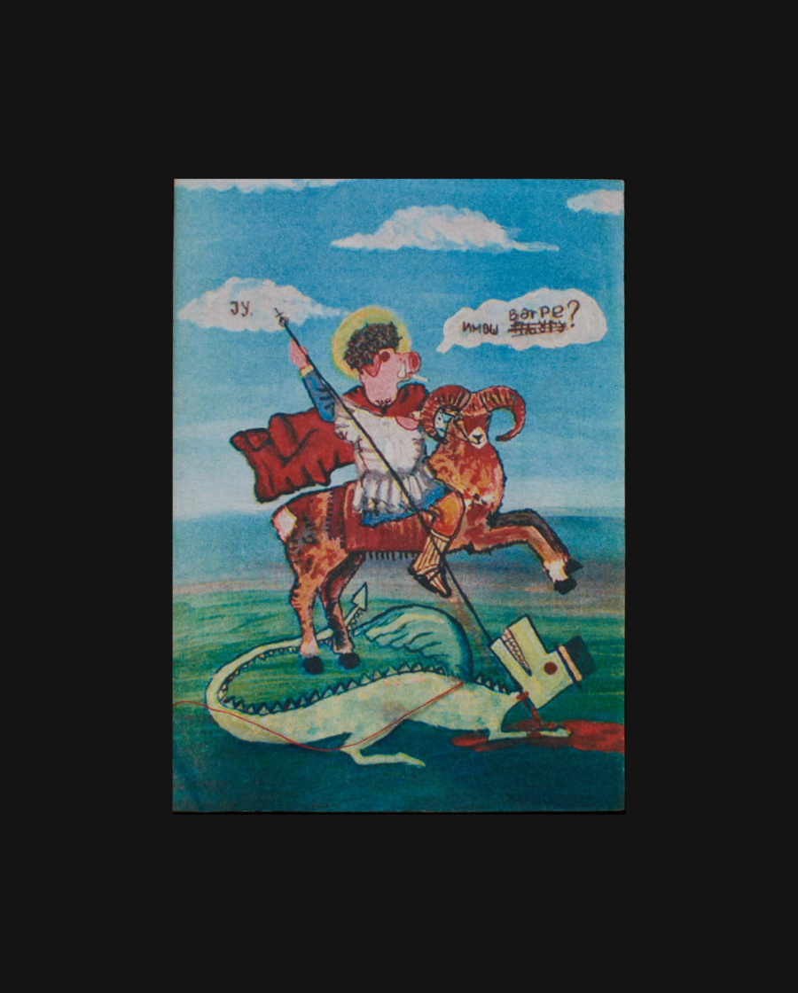 Although this fanzine contains many photos of beds, there is rarely any rest in it. The cover of the fanzine itself, done by Klot Srđan Milenković, on which St. Pig (probably from the poem Sunce Svinja) rides a ram while killing a dragon with a hat on his head with a spear, is disturbing with its image, because although the image is clear and the motif recognizable, the context in which it is located makes the heart skip a beat. From page to page, the story takes us through the chaos of life on the road and attempts to find a little routine and a little order in this madness, at least in a made bed.