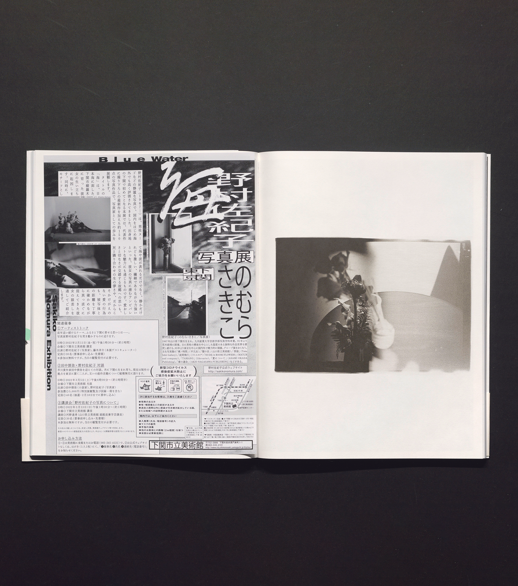 Published on the occasion of a large-scale solo exhibition in Sakiko Nomura’s hometown of Shimonoseki, this photobook features older as well as completely new photographs by one of Japan’s most distinguished female photographers. A former assistant to Nobuyoshi Araki, Nomura is known for pictures which glow with strength and intensity and are rooted in stillness and delicacy. Whether she portrays withering flowers, shifting fabrics, flashes of skin, palpable absences, or heavy gazes, Nomura’s images play with longing, eroticism, and allusions. With its generous selection of works from her entire 30-year career, ‘Blue Water’ captures the essence of Nomura’s photography.