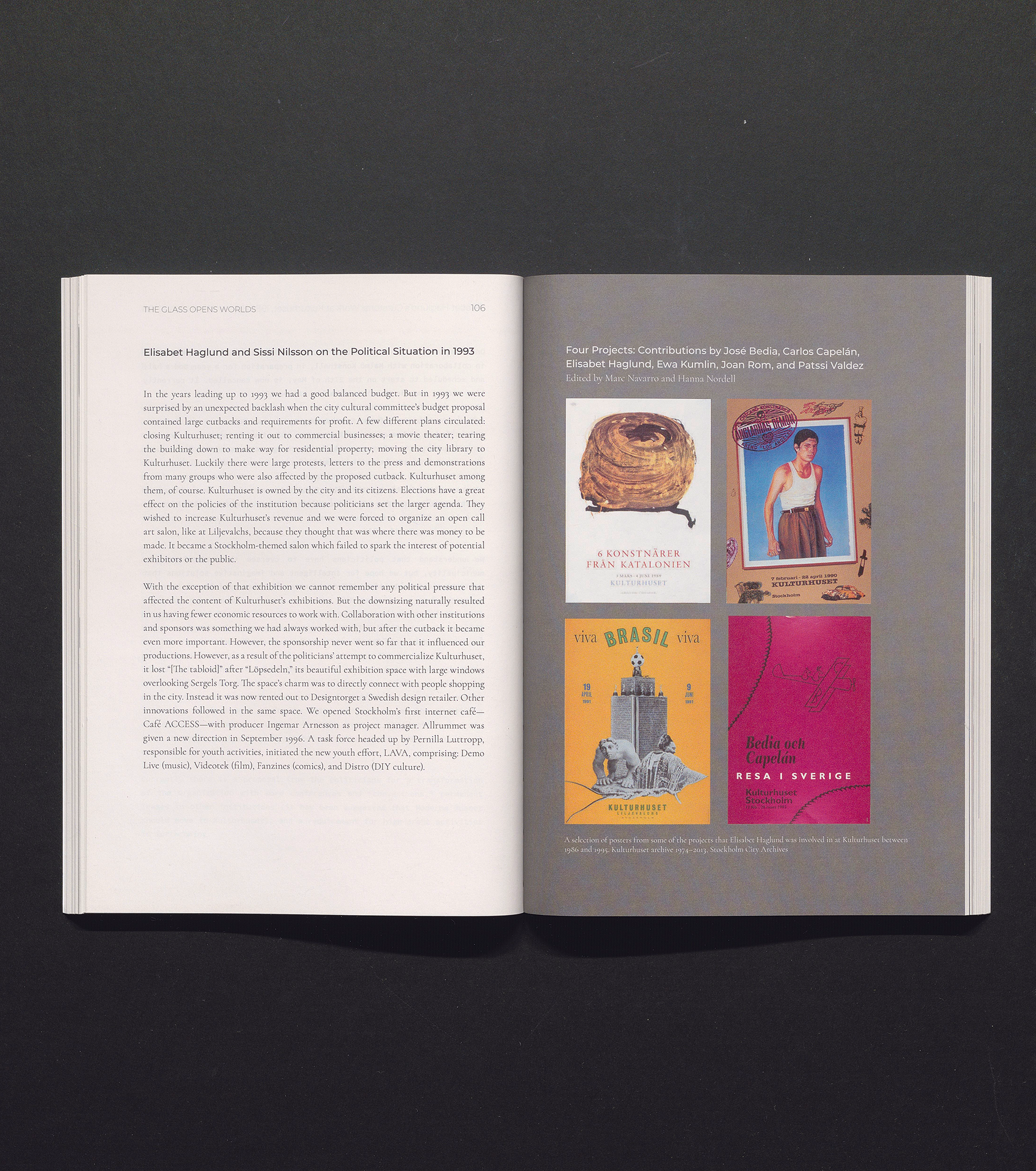 Through four case studies, Curating beyond the Mainstream researches decolonial and other non-hegemonic approaches to the profession of curating in Sweden from the 1960s to the early 2000s. Carlos Capelán, Elisabet Haglund, Gunilla Lundahl, and Jan-Erik Lundström made a mark on both art and curating in their time at institutions such as Kulturhuset and Arkitekturmuseet in Stockholm and Borås Konstmuseum and Bildmuseet in Umeå, as well as through exhibitions on trains and in parks. Pioneering what today is called “social practice,” and embracing art and artists from all over the world, these figures and their hitherto under-researched work are highlighted in this publication through presentations, essays, and interviews, accompanied by rare photographic documentation.
