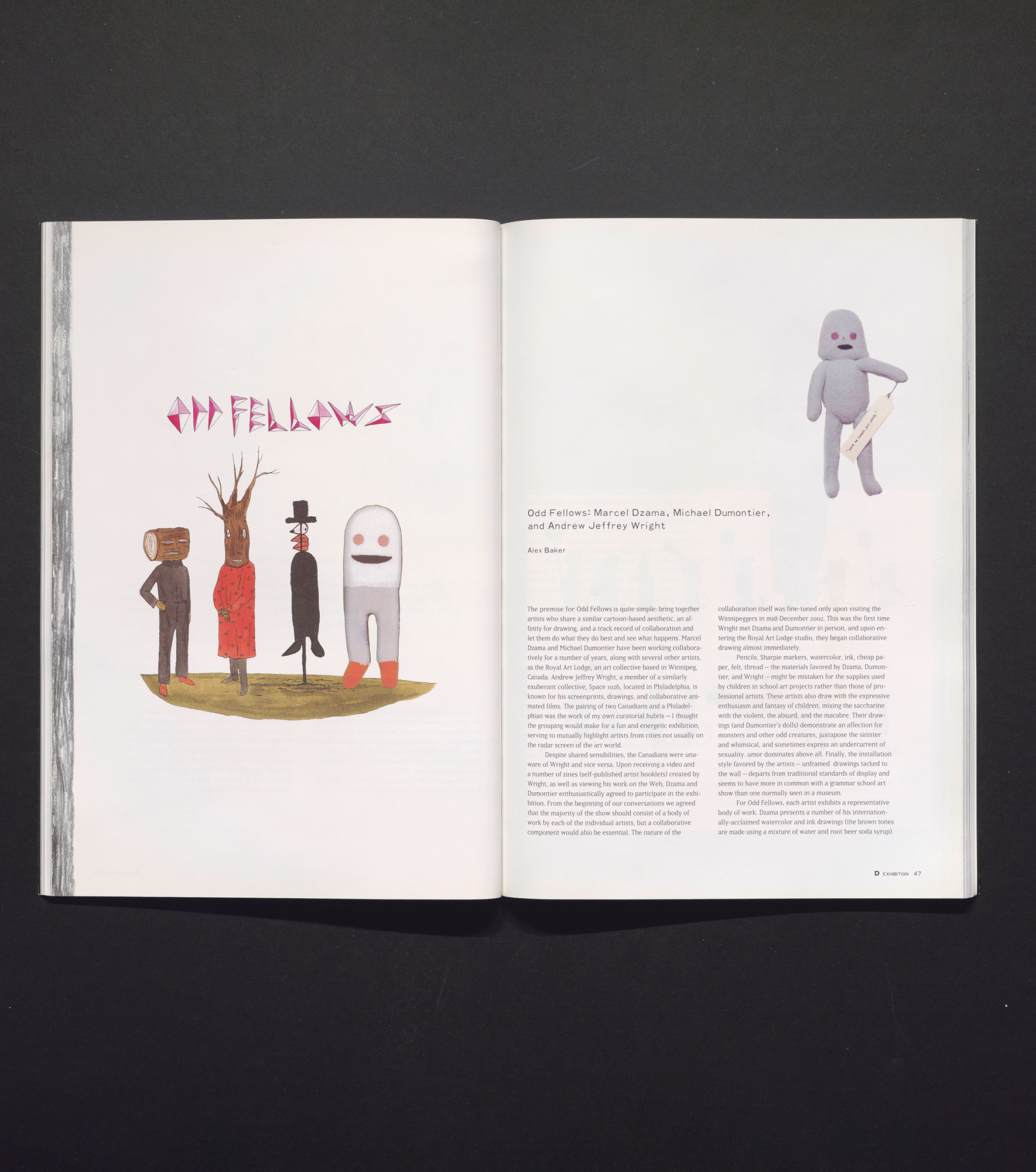 D is conceived as a magazine focusing on drawing as a practice and a medium. By engaging leading and emerging artists, curators, critics, and scholars to reflect on drawing as both an essential process and a universal, cross-disciplinary activity, D offers itself as an experiment in representation, commentary, and analysis. We offer D as a compilation of elaborate traces of research and intangible ideas that spans the spectrum between drawing defined in traditional terms of academic, propositional and documentary depiction; autobiographical expression and records of intimacy; speculative architectural cosmologies employing figu-ration; and finally, democratic expression, suggesting that in the primacy of the practice lies the context for drawing as a successful collaborative process. The essays included in the pilot issue of D illuminate the work chosen while encouraging an experimental and expansive approach to the way we look at and think about drawing. Each text helps make visible a wider selection of practices and environments for drawing while elaborating on diverse connotations of re-search, observation, and extensions of drawing.