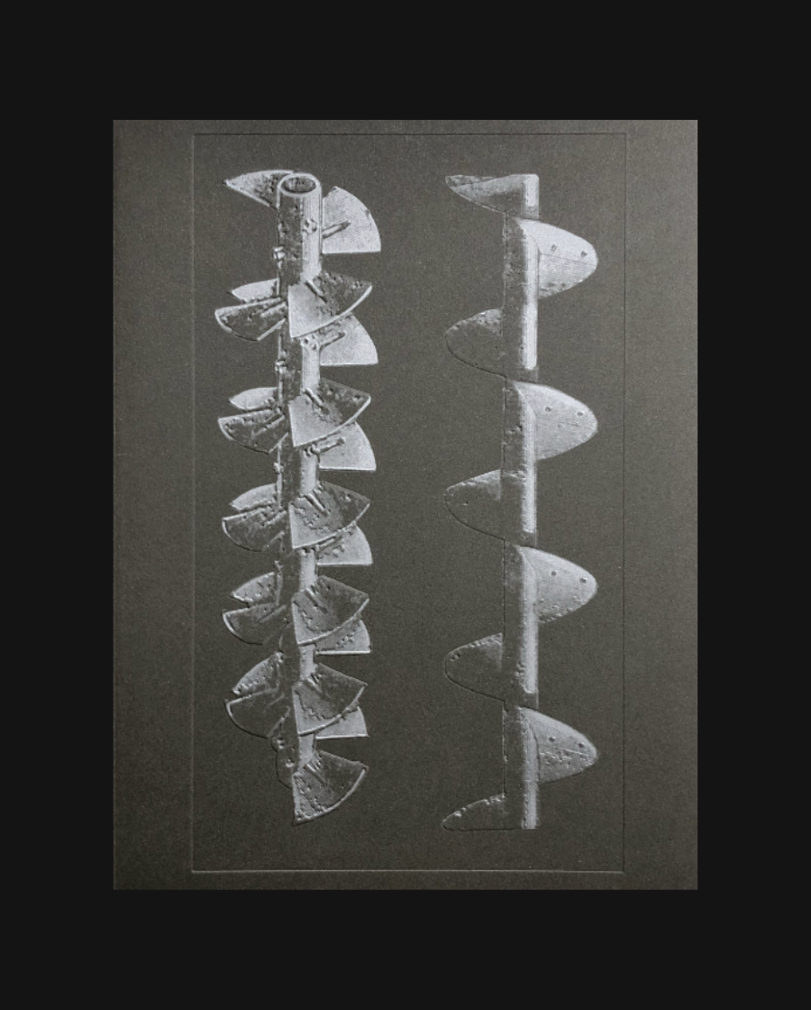 La Nonpareille expands on Batia Suter’s site-specific installation at TU Delft, in which she engaged with an archive of glass slides from its library. Originally used between 1900 and 1960 for lectures in Mechanical Technology, these visibly worn plates document machines, industrial materials, and production processes during a period of increasing mechanisation. Suter reworks the material into a visual reflection on the entanglement of humans and machines – and how technology reshapes perception, labour, and everyday life. Many compositions in the book consist of layered montages, where multiple images are overlaid to create new, morphed forms and associations.